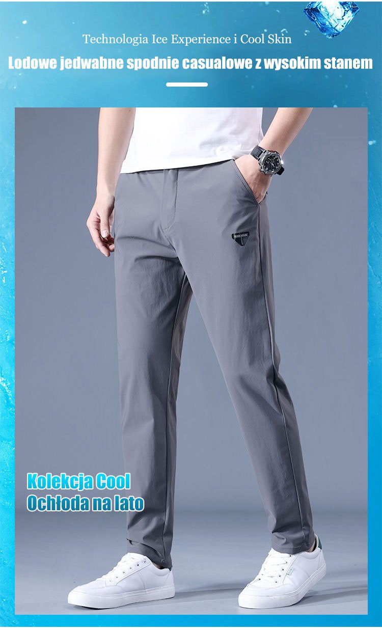 Lodowe jedwabne spodnie casualowe z wysokim stanem